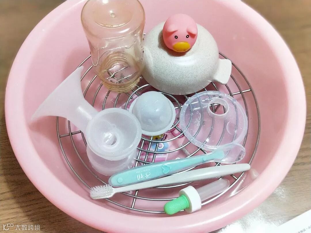 买锅送的蒸菜架,放在脸盆里,正好用来晾奶瓶。
