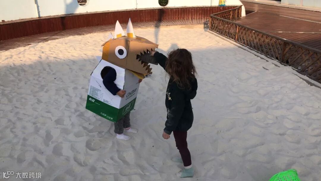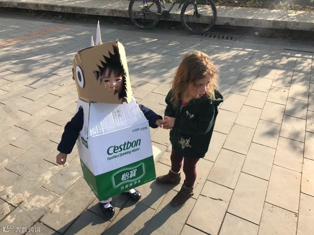心灵手巧的胖胖妈下午闲着没事干,就拿废纸箱给胖胖做了个小恐龙,下午去幼儿园接胖胖时带去了,全园轰动,胖胖穿上就不愿意脱了,整条街最靓的龙非你莫属了~