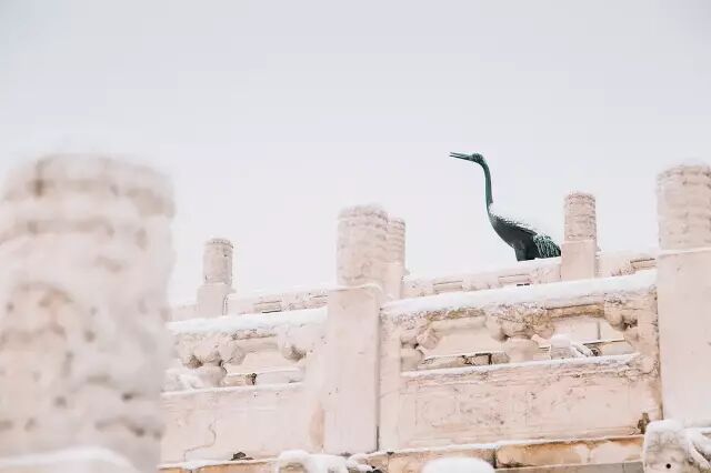 雪铺满了宫殿的屋顶,铺满了金水桥,铺满了石板路,飘落在太和殿前的铜龟和铜鹤上,落在屋脊上那些小巧的琉璃神兽上。
