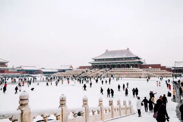 但直到我离开故宫时,故宫仍旧是在一片白茫茫的雪中的,那些皇宫六院的屋顶上仍是纯净的白色,微微露出一点琉璃瓦的颜色,仍旧十分美丽。