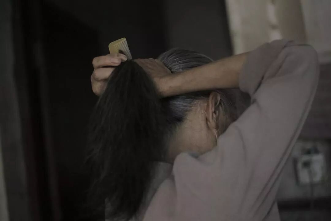 我看她低着头拿着一把有缺口的梳子在认真的梳她的白发转身找了吹风机给她吹。