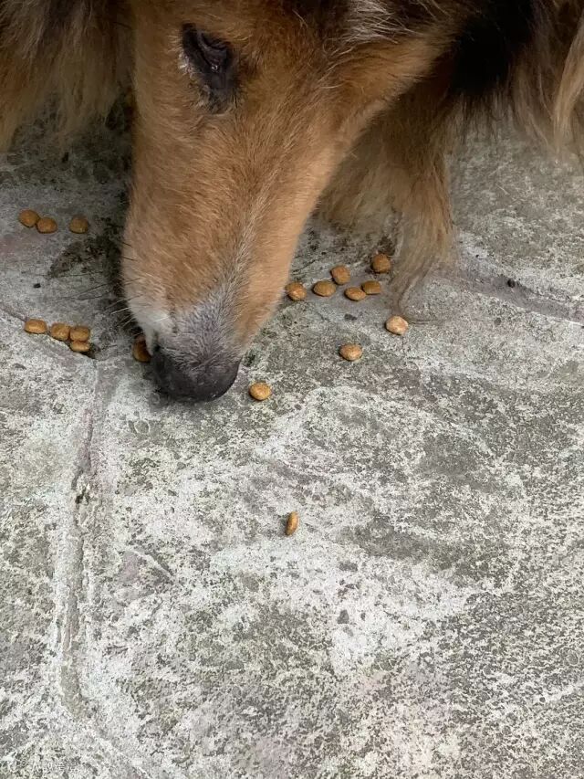 今天倒垃圾看到了,好可怜以前很漂亮的毛几年不剪都打结了。给他倒了一罐狗粮吃的飞快,然后又添了两罐足足吃了三罐才饱了。