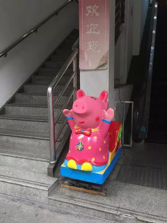 几乎每个超市门口都有一个“摇摇车”,投入硬币就能坐上去获得短暂快乐。
