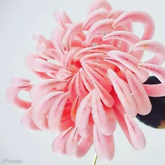 做一朵故宫同款的绒花给丢妹戴,可是它躲起来了[皱眉]。电视剧也好处,可以普及一下优秀别致的传统手工艺。(图四:北京故宫博物院藏清代仕女头饰:粉色菊绒花)