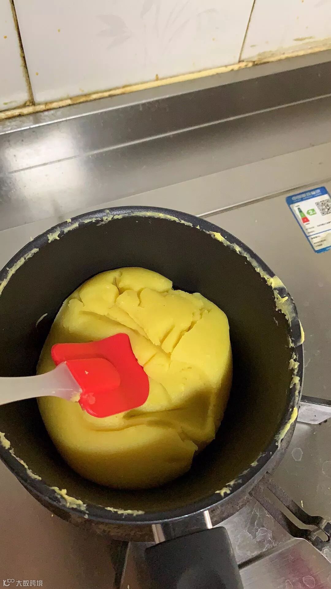 冰心的就是弄点液体状的冻上,然后包进去。我弄了巧克力冰心,黄油加巧克力加旺仔,放到冰格里冻住,再拿绿豆沙包上。