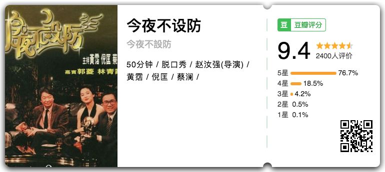 今天RAMA想推荐的这档香港深夜访谈可能把这种形式做到了淋漓尽致、放浪形骸的程度。这就是由亚视于1989至1990年制作的《今夜不设防》,英文名Celebrity Talk Show。豆瓣评分9.4。
