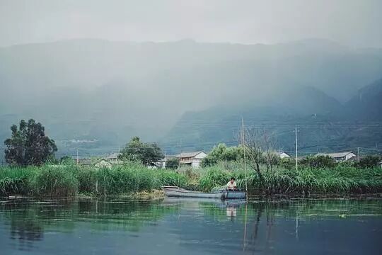 水村山郭,山上的白塔,水里的白鹭。想起小时候流过门口的河里有穿箬笠蓑衣的老翁用鸬鹚捕鱼。要是在宋元这些划着小舟钓鱼的人就马远或是吴镇画里的样子吧,文人画家们爱画渔父已经变成一个象征归隐的符号了。