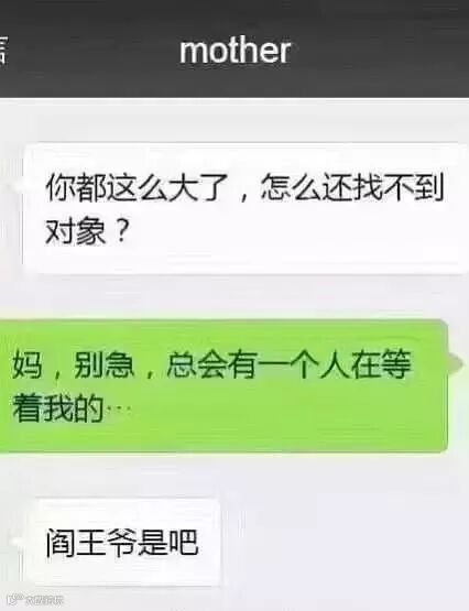 我:妈我想换一个碗,这个花纹太丑啦。我妈:那个不是花纹,那是你脸的倒影。