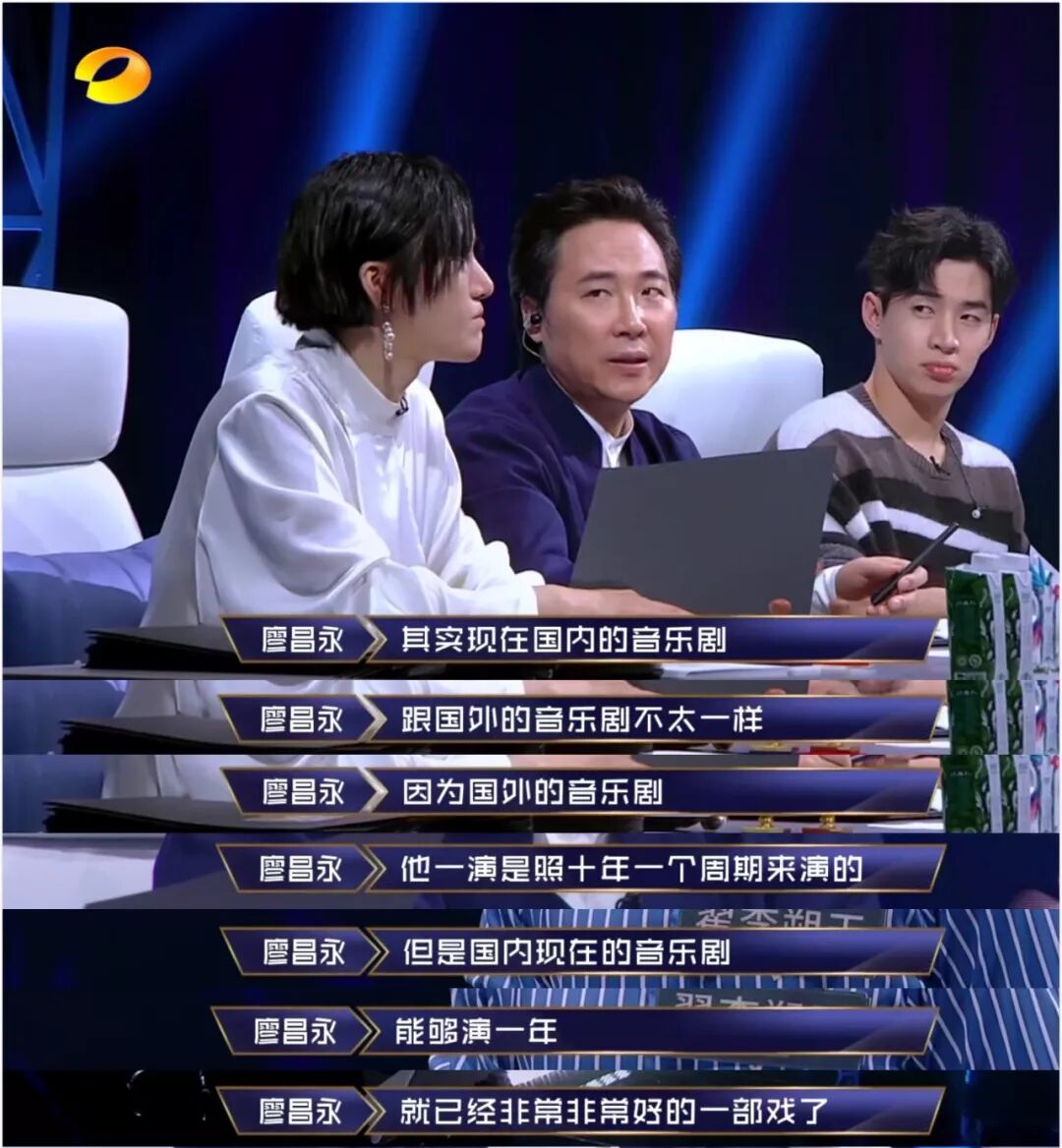 廖昌永提到,现在国内的音乐剧和国外的不太一样,国外是十年一个周期来演,而国内的音乐剧能够演够一年就已经是非常好的一部戏了。