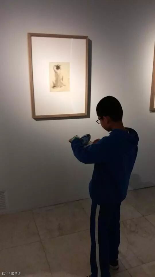 今天在徐悲鸿画展上,看到一位很可爱的小朋友在聚精会神地临摹裸体素描,画完我请他让我拍一张他的作品。把画里的阿姨画得好方,哈哈哈