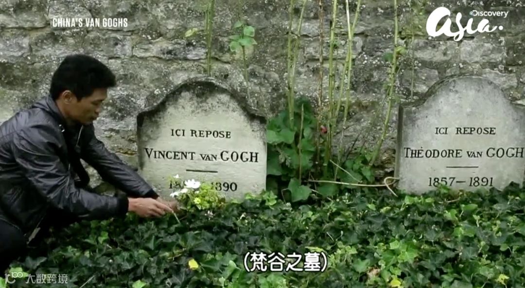 第二天,他来到梵高墓祭拜。家境贫寒的他,因为临摹梵高的作品,如今过上了温饱的生活。