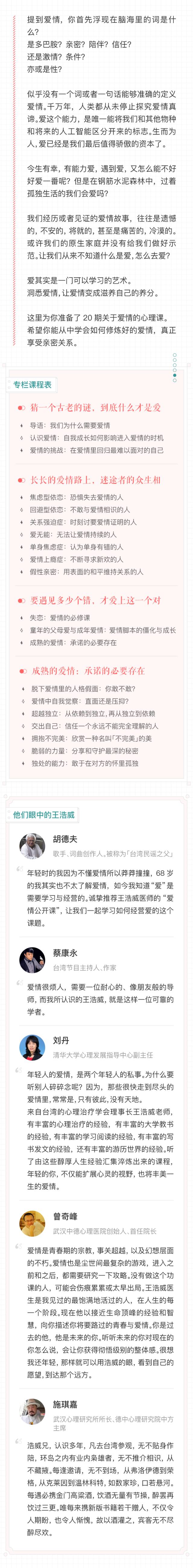 不用担心,豆瓣时间联合壹心理邀请到台湾著名心理治疗师兼精神科医生王浩威,共同打造一门《亲密而独立—洞悉爱情的20堂心理课》。20期课程,王浩威老师从心理咨询的角度去将爱剖析,重组,整合。让你更懂得爱,懂得自己,也懂得彼此的需要。