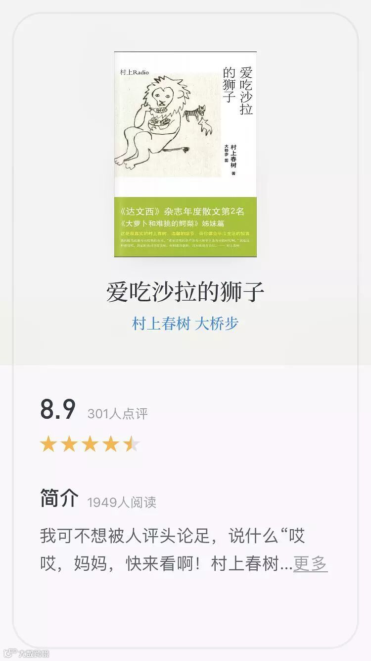 不看这本书,我大概永远都不会知道写看不懂的《挪威的森林》的村上居然是个这么可爱有趣的人。里面都是小短篇,几分钟就能看一篇。