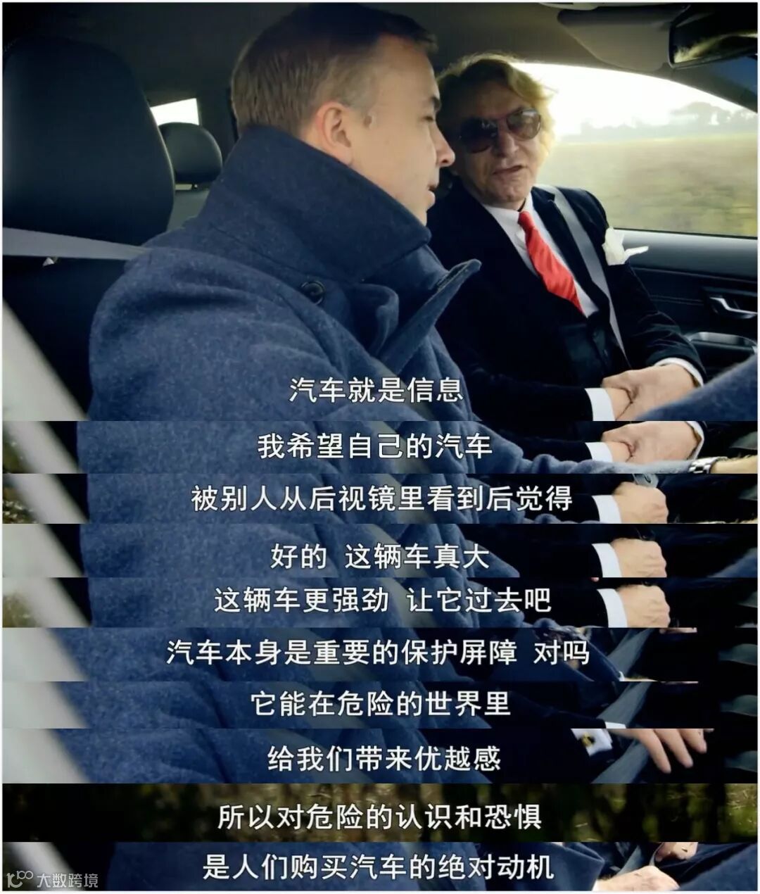“汽车就信息,本身就是重要的保护屏障,它能在危险的世界里,给我们带来优越感。所以对危险的认识和恐惧,是人们购买汽车的绝对动机。”