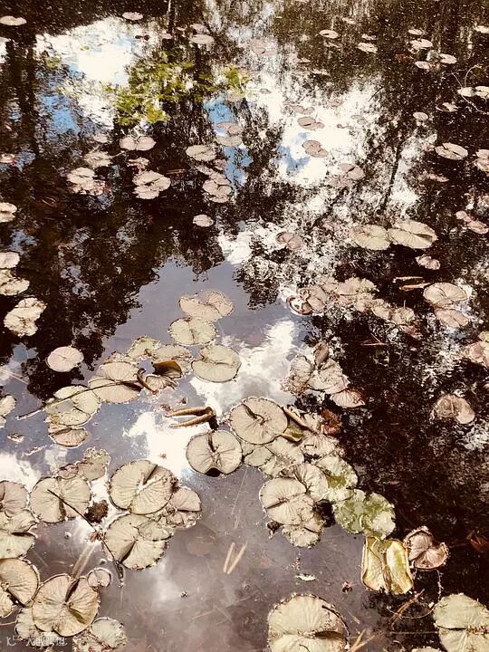 跑到公园里拍这个时,只想到莫奈晚年睡莲池;回头一琢磨,这景又合杨万里“树阴照水爱晴柔”,莫奈和杨万里的思想有联系吗?于是边跑边开脑洞:莫奈喜欢浮世绘——浮世绘多受狩野派美学影响——狩野派受南宋院体画影响——杨万里是南宋诗人。Bang!新的大发现!莫奈——杨万里,连上了!!