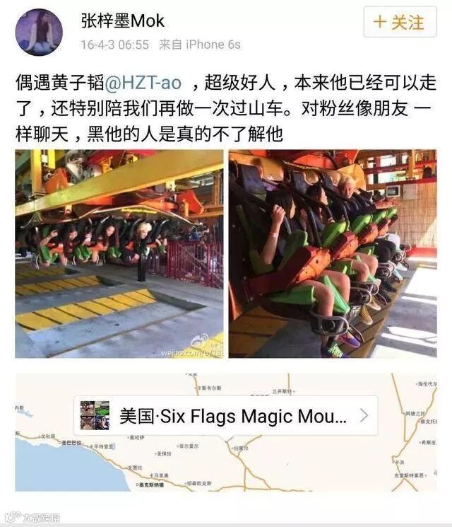不过也有很幸运的粉丝,被黄子韬陪着坐了一次过山车↓