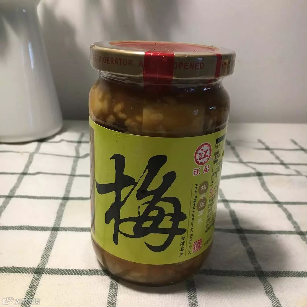 这是江记梅子豆腐乳,酸酸甜甜,有股酒味。刚开始的时候我觉得一点都不好吃。后来有次煮了菜心粥,跟菜心粥一起吃,就蛮不错的了~