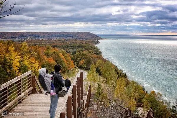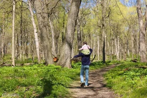 秋天去威斯康星,她就已经开始能在落叶里撒欢打滚了。这也是第一回我开始尝试着背她徒步。那会她还是个小不点儿,很轻,用她刚出生时买的那个背包就好。背着她爬山、登观景台,都不太算个事儿。特别的好处是背到高处,你也不用担心她会乱跑掉下去。她虽然年纪小,却挺会养生,本着能躺着就不站着,能背着就不自己走的原则,很自然的就习惯了这种不用费脚劲又能看风景的旅行方式。