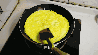 鸡蛋打散后放入锅中煎鸡蛋饼,取出切丝。