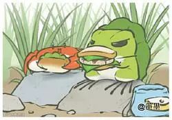 螃蟹的稀有明信片基本是野餐和坐小船,但是有一张出现了蛙蛙的家族……啊,蛙蛙难道喜欢沉默型的吗。
