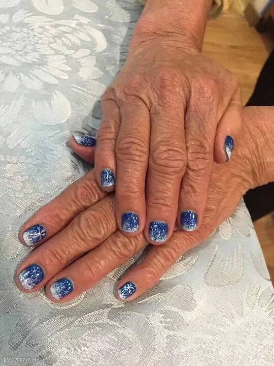 今天带外婆去做美甲,问她喜欢什么颜色,她说喜欢圣诞节,于是美甲师给她做了一个圣诞雪花款。做完后她可高兴了,回家和我外公说:“我做了指甲不能沾水,今天你洗碗。”这就是老年人的塑料夫妻情。