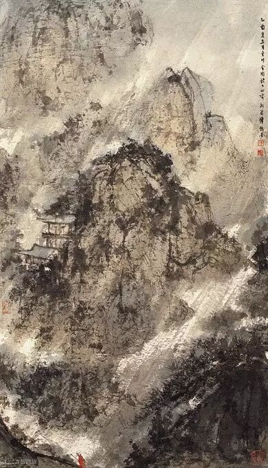 第三种,直接就能画出雨来的。就是神一样存在的傅抱石同志。我放两张他的图,大家感受一下什么叫完美的功夫加上完美的气氛: