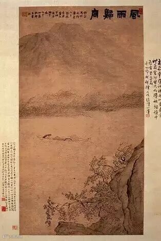 既有像金农画的《风雨归舟》这样的作品。也有像石涛画的《烟树涨村》,或者龚贤画的《夏山过雨》那样的作品。但是,请注意,无论我上面说的哪副画,即使他们直接画雨或者画面提示是不擅长的,也不代表着他们画的不好,“风雨味”不足。尤其看一下石涛和龚贤这两幅,风雨气氛做的太足了好不好。