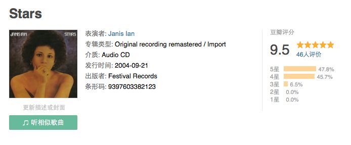 我和M在店里待了2个多小时,听了无数好音乐,还新认识了Janis Ian,感兴趣的可以去先从她的这张专辑听起,尤其是里面那首《Jesse》,值得在夜里一听再听。