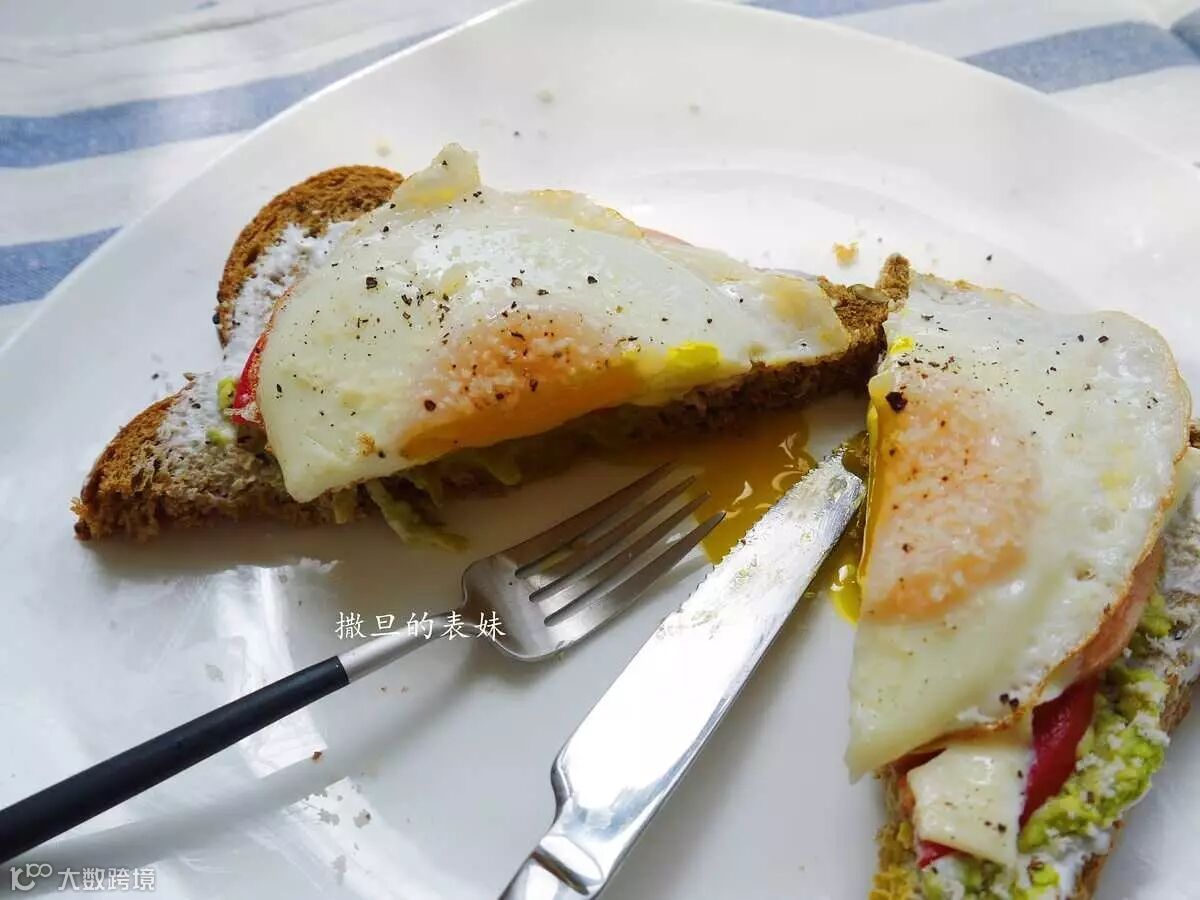 开放式三明治,字面意思,就是上面不“加盖”,只有一片面包的三明治。