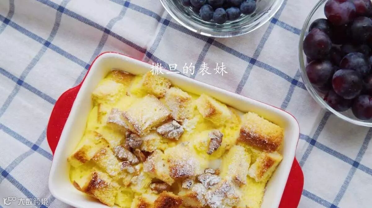 Tips:如果想要味道更香浓,可以用一半鲜奶油和一半牛奶做蛋奶液,但是热量也会更高。还可以加香蕉,切成片放进去一起烤。
