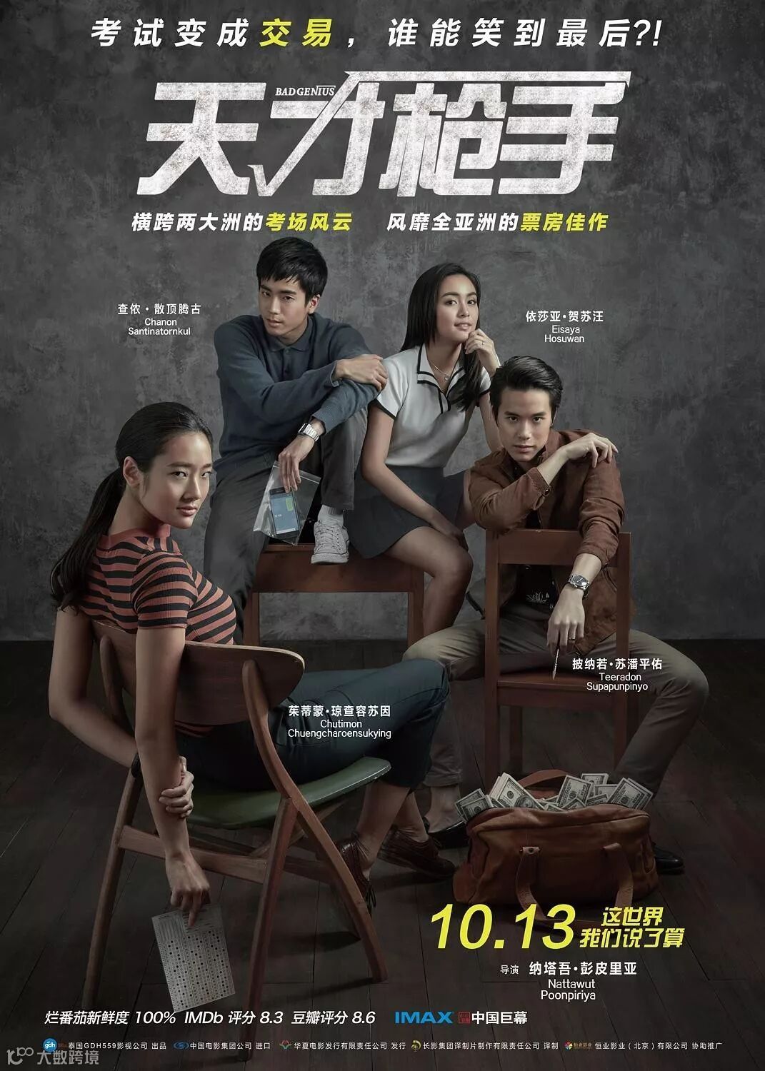 泰国高分片《天才枪手》依旧卫冕电影榜冠军,不管是新颖的题材,还是对考试现场颠覆性的刻画,都让人眼前一亮。把学生作弊拍成了间谍惊悚片的紧张节奏更是看得人喘不过气。上周末,片中三位泰国90后演员也来到中国宣传,为影片再次推波助澜。