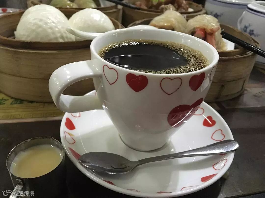 咖啡是真的有煮好和现煮之分,现煮还是用现磨的豆子煮的滴滤咖啡,都配一小杯鹰唛炼乳。