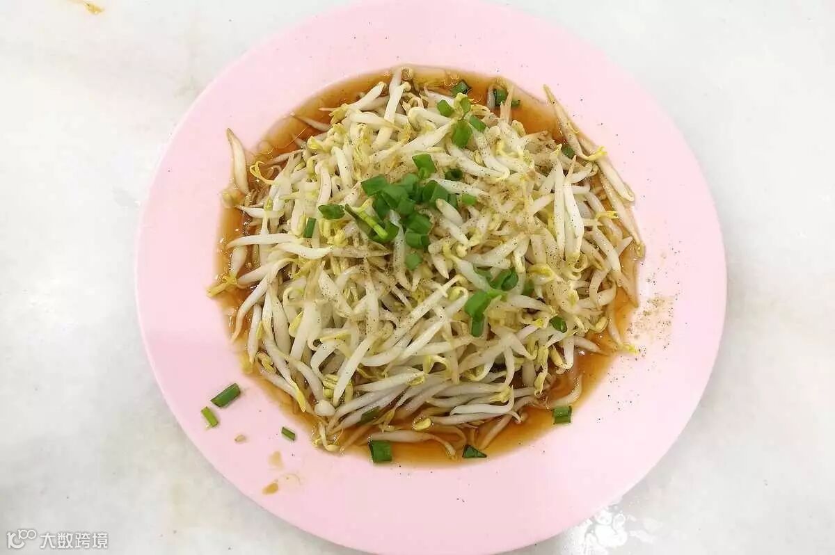 但眼前的这盘豆芽,我可以当饭吃,吃一整盘都没问题!白灼后浇上咸味甜味适中的鸡油生抽,撒小葱和胡椒粉,竟能吃出满满鲜甜的肉味。