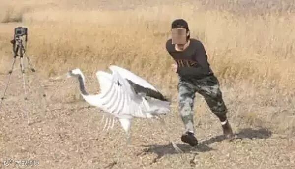 为了拍到鸟儿展翅的画面,摄影师将“不配合”的丹顶鹤驱赶至镜头前
