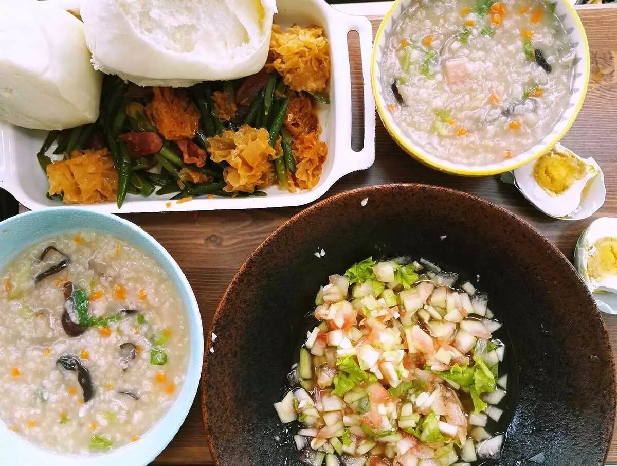 周日在家次饭啦!~ 天气太热,在阳台花园摆了个小桌子,两个人在外面吃饭。夏天恨不能所有的都清清爽爽~