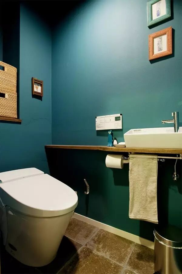 以前不敢刷上墙的颜色都可以大胆在马桶间中尝试,特别是深颜色的油漆,衬得马桶更加洁白发亮▼