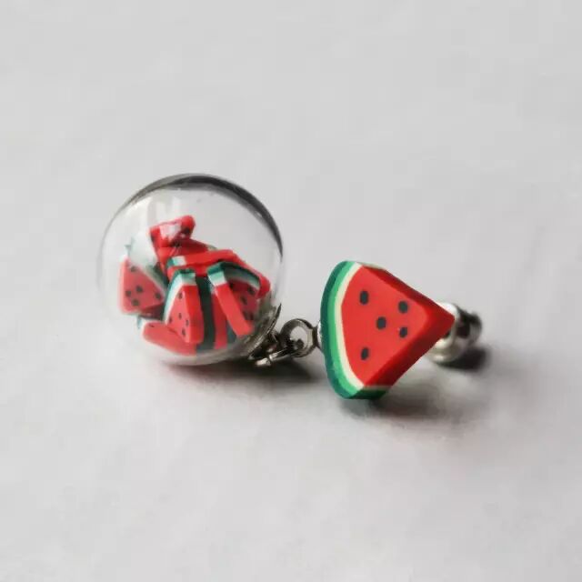 原宿软妹西瓜气泡玻璃透明耳钉