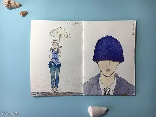 继续临摹 Fabrice Moireau,右页是临摹丽丝白.茨威格的一只鱼,和时装杂志里的一个小姐姐。