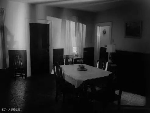 黑白影像中运用“黑色电影”风格加大光比,使用阴影和投影制造心理压力和空间压力。特写镜头不断穿插在移动镜头中,将恐惧细节放大呈现,制造心理冲击。古典音乐造成一种情感的疏离,极其注重音响的使用来烘托环境,为以后的恐怖片和丧尸片树立了典范。