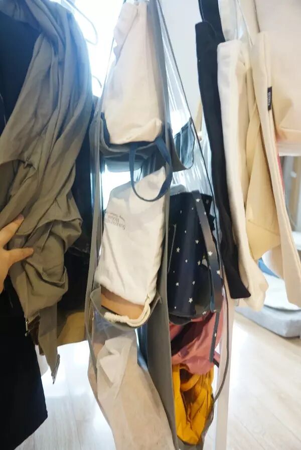这个包包收纳神器也是重点推荐,我这里真的非常小,衣服都放不下更别提这些占位置的包了。买了两个包包收纳衣架,把我所有的小包都收纳了,放取也很方便。
