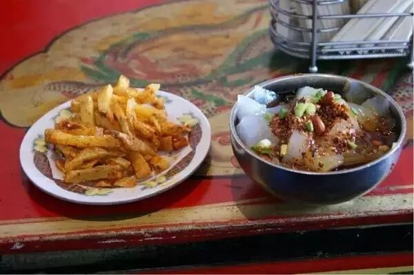 除了茶,茶馆里还提供吃的。藏面,凉粉,炸土豆,牛肉包子,咖喱饭。这些食物,在世界上最能吃的内地人看来,自然算不上什么美食的。然而他们都吃得十分开心。看着他们吃得开心,于是我们也觉得好吃起来。