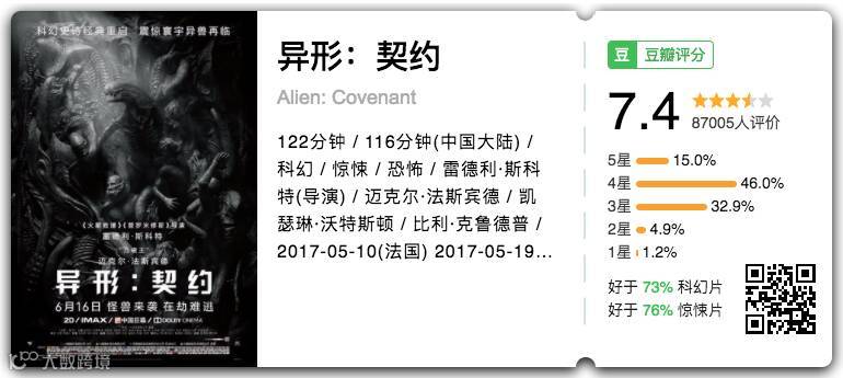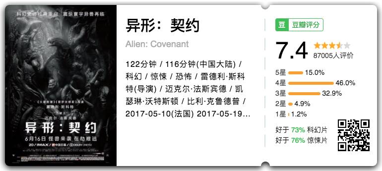pathmathem:把一部邪典电影拍到如此大制作实在是可敬可畏,机械对抗异形以及繁殖等迷影点全部奉上,Atmos放映厅表现可圈可点,现场热泪冷汗湿掉全身,上半年唯一能看的大制作。