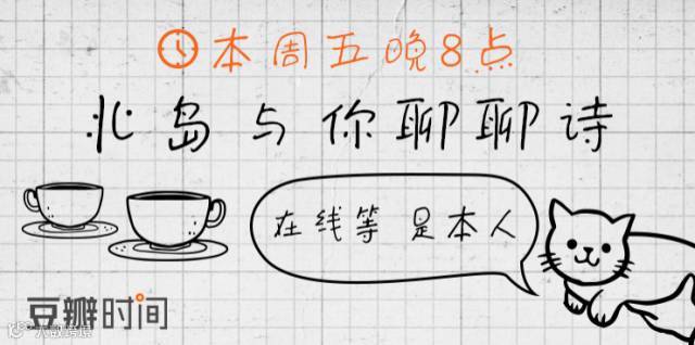 本周五晚8点,北岛将做客豆瓣,亲自回答豆友们的种种疑问。没错,就是北岛本岛(划掉)本人!