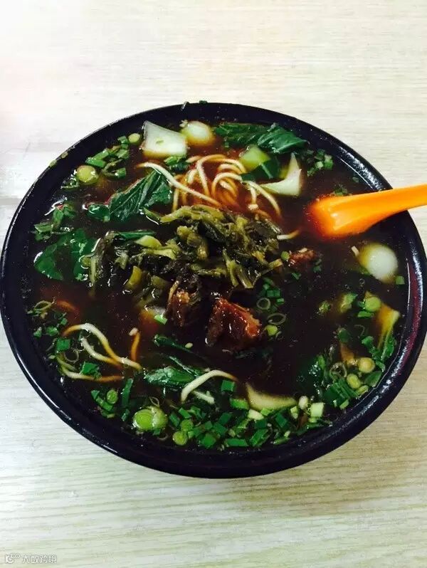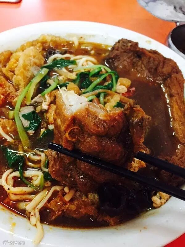 面条像是碱水面,硬度比较高,老卤的汤底颜色很重,味道非常浓,口感浑厚。 当时正好是深夜,路过一家24小时营业的,吃上这么一碗,面条有劲道,还有几块小排炖的入味,搭配了雪菜和油菜,浑身畅快。