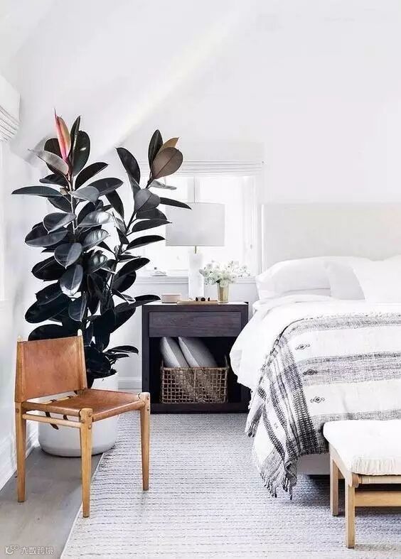 大叶植物看起来有满满的度假感,非常放松,但也比较粗犷,没那么精致。如果你希望房间看起来秀气一些,可以尝试小叶子植物,地域感就没那么强烈。比如文章开头说的鹅掌藤▼