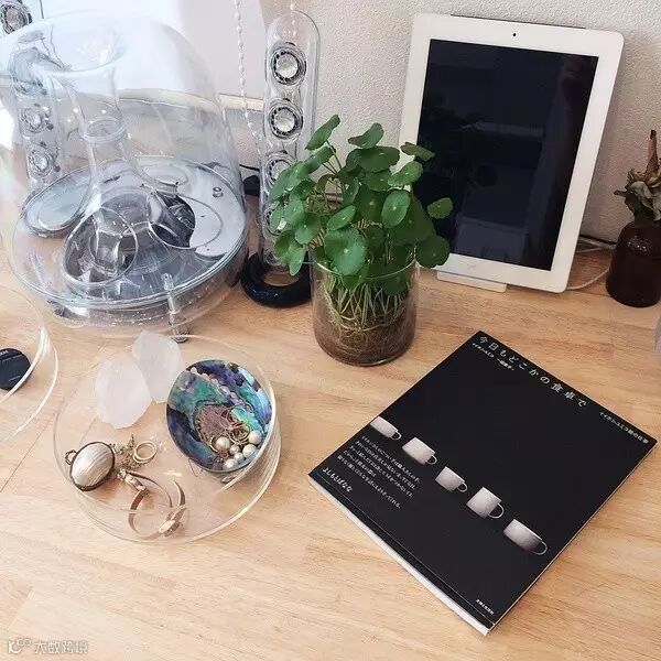 水培植物放在厨房和卫生间最合适不过了,一来做家务时看看它们有个好心情,二来换水也比较方便▼