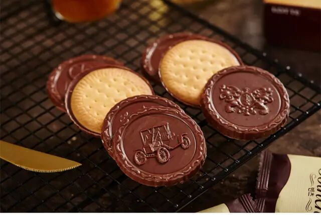 豆豆对巧克力饼干完全没有抵抗力!一面是饼干一面是巧克力的口感很棒,就连巧克力了上的图案都很精致~