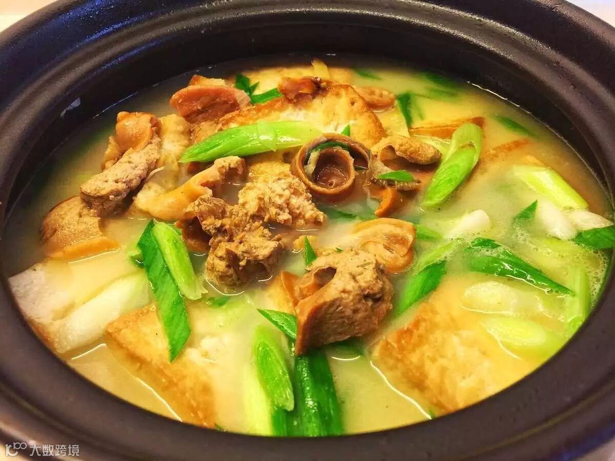 炖到汤汁呈乳白色的时候,放入煎好的老豆腐,继续炖煮十分钟。