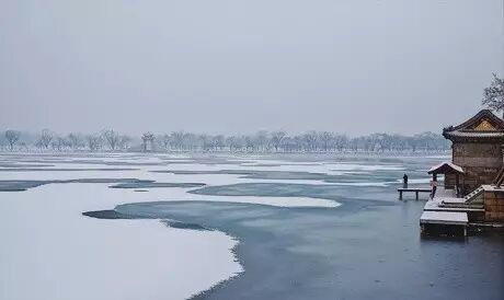 #雪后颐和园# 清晨的天未完全放晴,仍有雾气。十七孔桥上的残雪已被扫净,站在桥上能隐约看见湖对面的练桥。路边积了厚实的雪,几根细长的枯草疏落地点缀其中。雪后的颐和园似乎只有灰蓝、白和棕黑三种色调,至简至美。西堤边的山桃枝条上缀着无数花苞,一月之后这里又是另一番热闹的春景了。