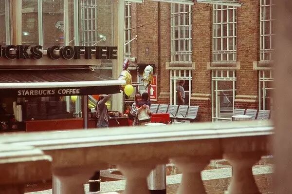利物浦车站外,从花市回来的我下了公交想转地铁回西伦敦,突然而至的大雨把我困在了十几米之外的建筑外走廊。抱着花拿着相机不想冒雨,等了十几分钟天就转晴,地上还有未干的雨水,看到了拿着气球,不知道是重逢还是告别的两个人的拥抱。